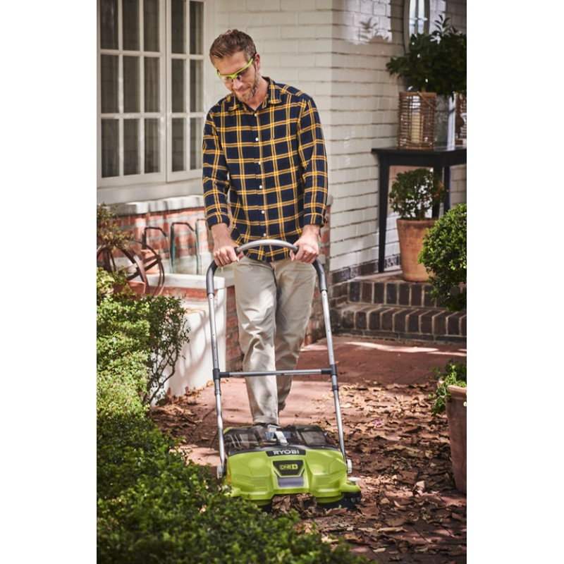 Акумуляторна щеточная прибиральна машина Ryobi R18SW3-0 5133004365 використовується для прибирання в гаражі, робочому місці або на доріжках в саду. Регульована по висоті рукоять з гумовими накладками налаштовується під зростання оператора для комфорту в роботі. Виступаючі щітки забезпечують якісне прибирання навіть в важкодоступних місцях. Прозорий сміттєзбірник об'ємом 17 л дозволяє своєчасно очистити бак.