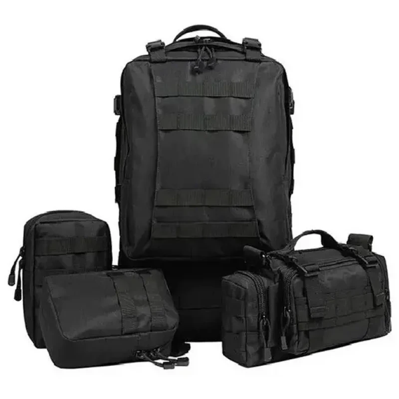 Рюкзак виготовлений з міцного поліестеру Оксфорд 800 D, він стійкий до дощу та бризок. Усередині шар матеріалу з ПВХ покриттям. Перевагою рюкзака є можливість (залежно від потреб) від'єднання трьох саше (одного більшого розміру спереду та двох менших з боків), які можна носити окремо.