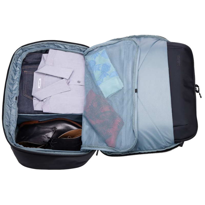 Носіть сумку як дорожню сумку на плечі або як рюкзак за допомогою складних ремнів. Якщо ви берете з собою ноутбук, знімний кейс можна використовувати окремо або для захисту ноутбука всередині сумки. Розкладний роздільник всередині основного відділення дозволяє адаптувати внутрішній простір, коли потрібно відокремити такі предмети як взуття від іншої одягу, або просто додати більше організації.