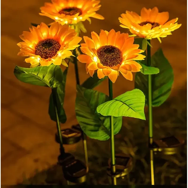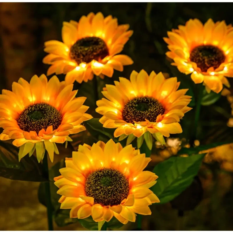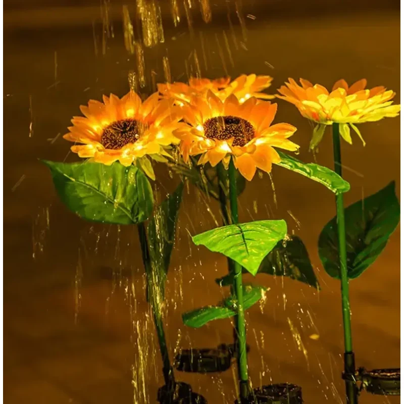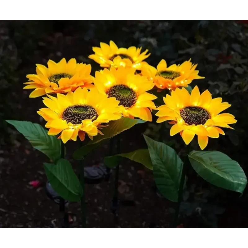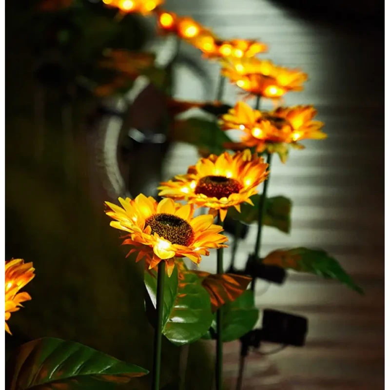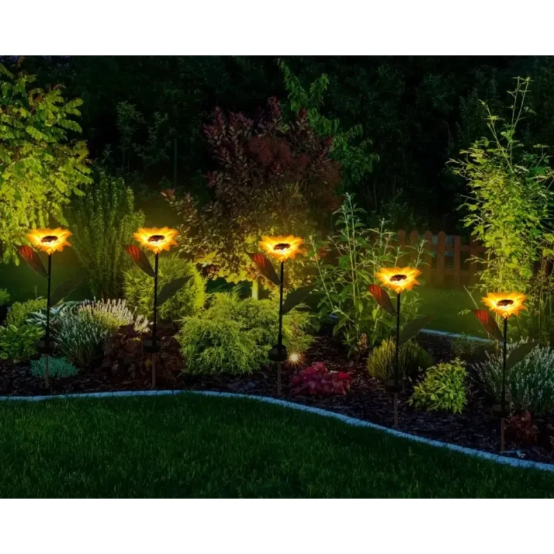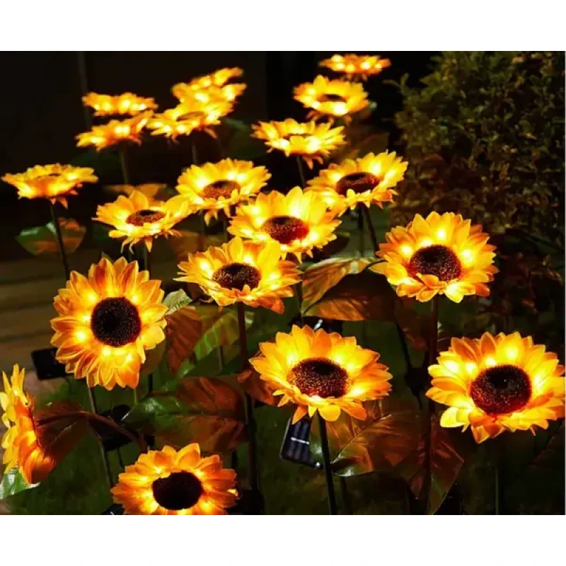Стебла та листя підтримуються залізним дротом, що забезпечує гнучкість та довговічність, дозволяючи згинати їх за бажанням. Вуличний світильник відмінний подарунок для сім'ї та друзів на Різдво або день Святого Валентина. Сонячний світильник соняшника ідеально підходить для прикраси саду, газону, доріжки, тераси, паркану чи заднього двору.