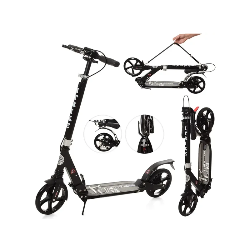 Складаний самокат SR 2-018 незамінний у міських умовах руху, його легко та зручно брати з собою у поїздку. Майданчик для ніг із спеціальною поверхнею.
