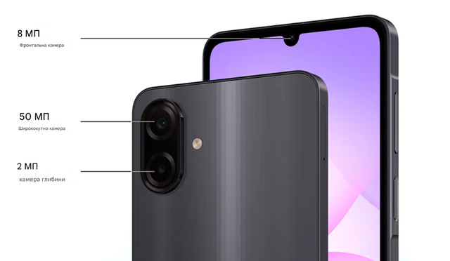 Відкрийте для себе неймовірний досвід користування Galaxy A07 завтовшки 7,6 мм. Доступний у чорному, фіолетовому та зеленому кольорах.
