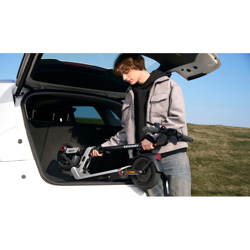 Електросамокат Segway-Ninebot E3 PRO E (сірий) оснащений мотором до 800 Вт і здатний розвивати швидкість до 25 км/год. Запас ходу становить до 55 км у режимі Eco та до 40 км у Sport, а з додатковою батареєю – до 80 км. Підвійна підвіска та 10" безкамерні шини забезпечують комфортну їзду, а система SegRide з контролем зчеплення підвищує безпеку. LED-дисплей, Bluetooth, сумісність із Apple Find My, світлові індикатори та комбіноване гальмування роблять модель сучасною та зручною.