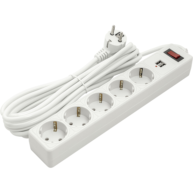 Назва: Мережевий фільтр PowerPlant 5 м, 3x1.5мм2, 10А, 5 розеток, 2xUSB 2.1A, євростандарт (JY-1056U/5)