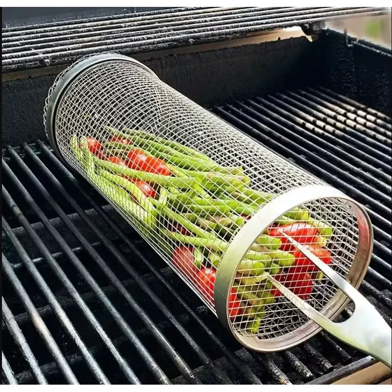 Продукти залишаються на місці, забезпечуючи ідеальне приготування кожного шматочка. Крім того, грати для гриля мають циліндричну форму, що дозволяє легко перевертати її на грилі за допомогою спеціальної ручки, яка йде в наборі. Завдяки круглій формі решітки для барбекю Ви зможете чудово контролювати процес смаження та досягти бажаного ступеня золотистості та підсмаженості шашлику та грилю.