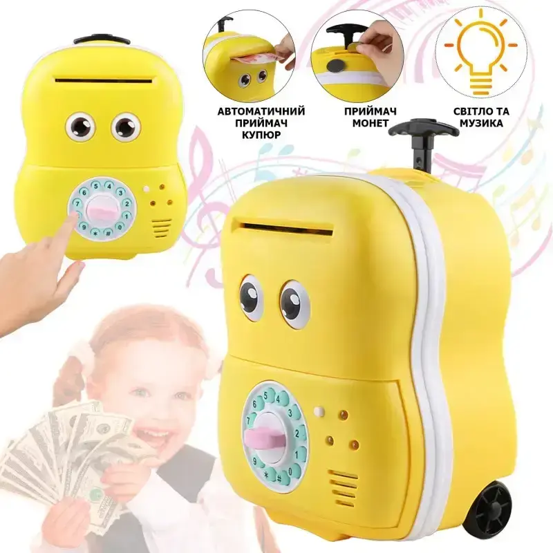 Скарбничка Чемодан стане чудовим помічником у зберіганні коштів дитини! З скарбничкою-сейфом буде весело накопичувати гроші на щось дуже важливе та потрібне для дитини. Коли Валіза їсть гріш, то кумедно крутить очима і радує Вас звуками.