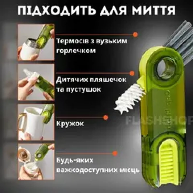 Відмінна щітка для чищення склянок і чашок 3в1 є незамінним інструментом для кухні, що допоможе швидко і легко очистити склянки та інші посудини зі стінками, які важко дістатися до звичайних інструментів.