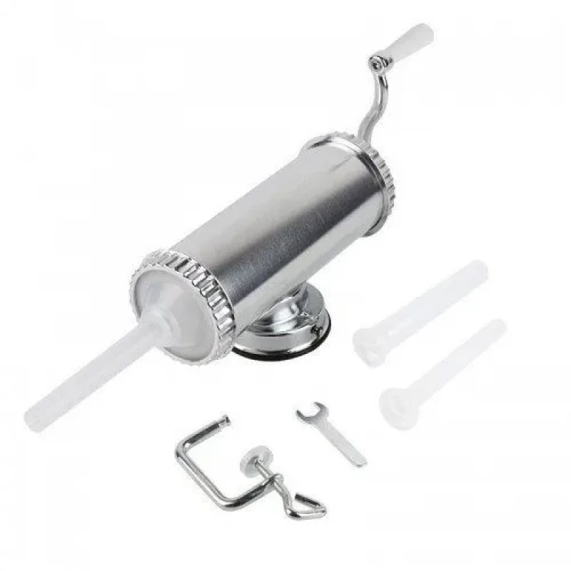 Тип Шприц ковбасний Місткість 1.5 кг Призначення Для виготовлення ковбас Матеріал Нержавіюча сталь, пластик Конструкція Горизонтальна, з ручним приводом Комплектація Шприц, насадки Колір Нержавіючий метал/чорний пластик Шприц ковбасний Vanessa 27006 з місткістю 1.5 кг — ідеальний інструмент для приготування домашніх ковбас. Горизонтальна конструкція і ручний привід забезпечують легкість використання та точність при заповненні оболонок. Виготовлений з високоякісних матеріалів, таких як нержавіюча сталь і пластик, цей шприц відрізняється високою міцністю та довговічністю. Колір поєднує нержавіючий метал і чорний пластик, що надає виробу стильний вигляд. У комплекті з шприцом ви отримаєте насадки, що дозволяють приготувати ковбаси різних форм і розмірів. Цей шприц стане незамінним помічником на вашій кухні для виготовлення смачних ковбас у домашніх умовах.