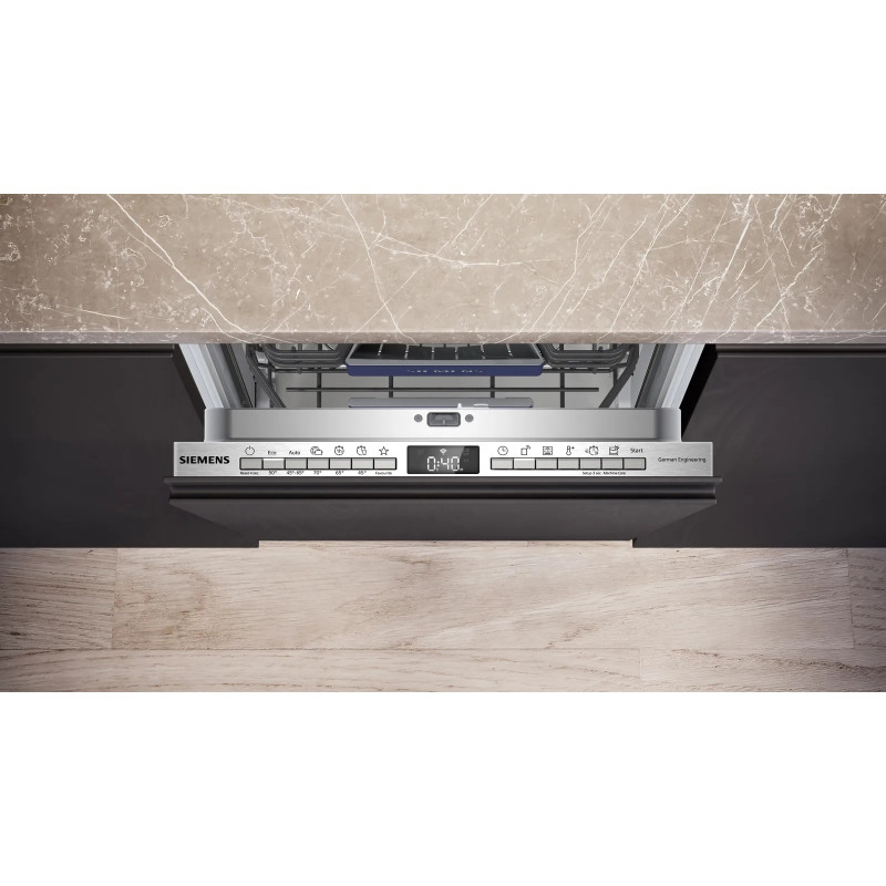 Вбудована посудомийна машина Siemens із Home Connect та автоматичним очищенням фільтра забезпечує стабільні результати миття та менше ручного догляду за приладом. Система захисту скла від ковзання, infoLight, «Тиша на вимогу» та трирівневе регулювання верхньої корзини створюють комфорт у щоденному використанні, а формат 45 см дає змогу вбудувати машину навіть у компактну кухню без втрати функціональності.
