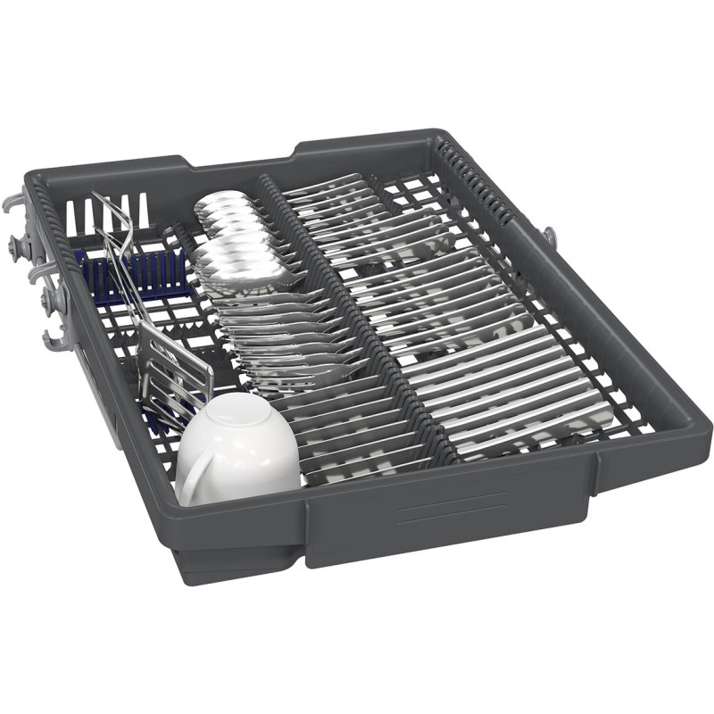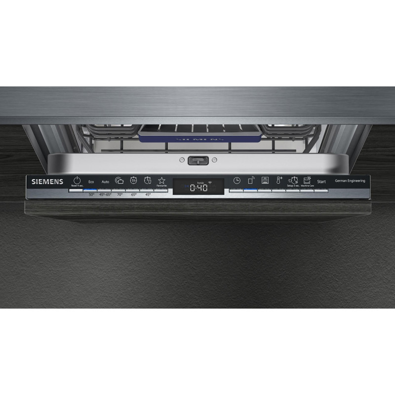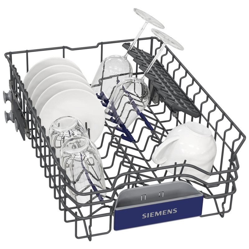 Вбудована посудомийна машина Siemens SR63HX66MK розрахована на 10 комплектів та має компактну ширину 45 см. Підтримується керування через Home Connect з підключенням по WLAN. Модель оснащена третьою корзиною, системою регулювання коробів rackMatic та інверторним двигуном iQdrive. Передбачено набір автоматичних програм та додаткові режими для гігієнічного миття. Індикація InfoLight відображає статус роботи на підлозі.