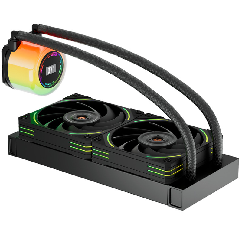 Реберний радіатор високої щільності що забезпечує ефективне відведення тепла. Підсвітка ARGB, яка синхронізується з материнською платою. Мідна ендотермічна холодна пластина для оптимального поглинання тепла. 9-лопатевий вентилятор FDB з регульованою температурою для малошумної роботи.