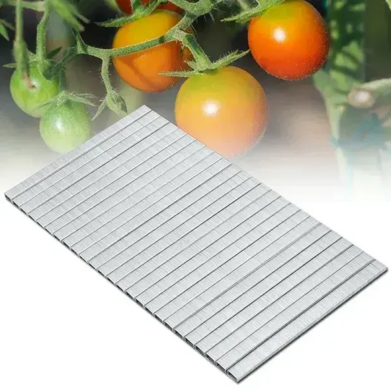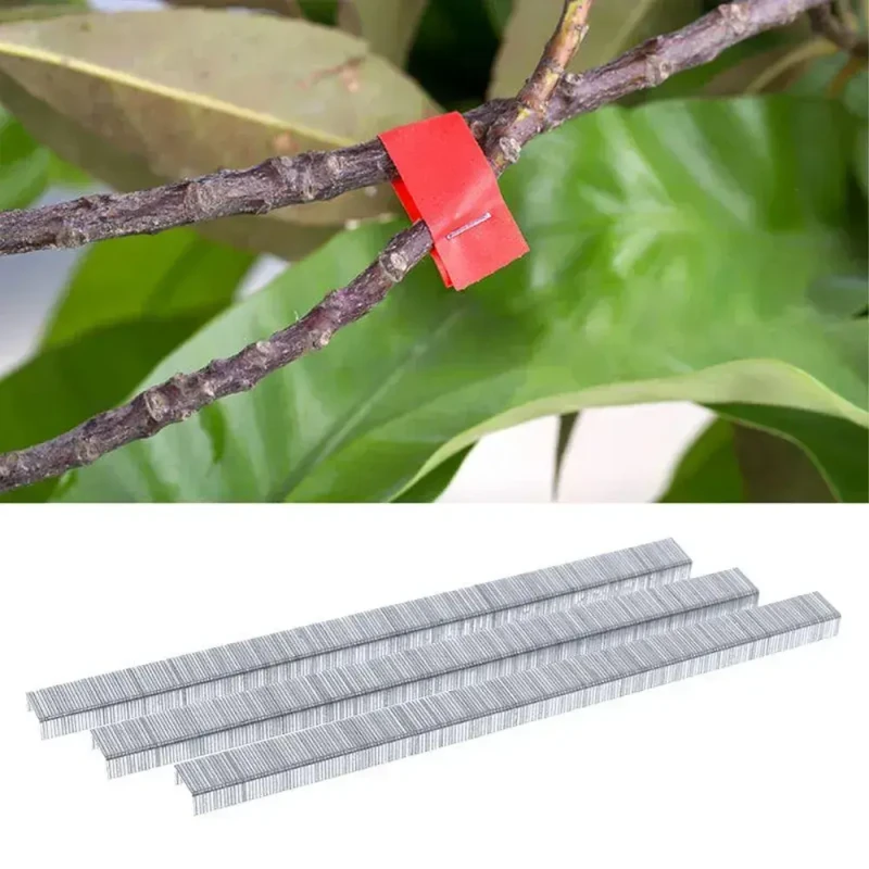 Скоби до степлеру виготовлені із міцного матеріалу, що забезпечує надійність та стійкість при використанні. Завдяки спеціальному дизайну вони забезпечують стійке та безпечне кріплення рослин, що сприяє їх правильному зростанню та розвитку. Скоби легко встановлюються в підв'язувальний степлер та швидко використовуються при садових роботах.