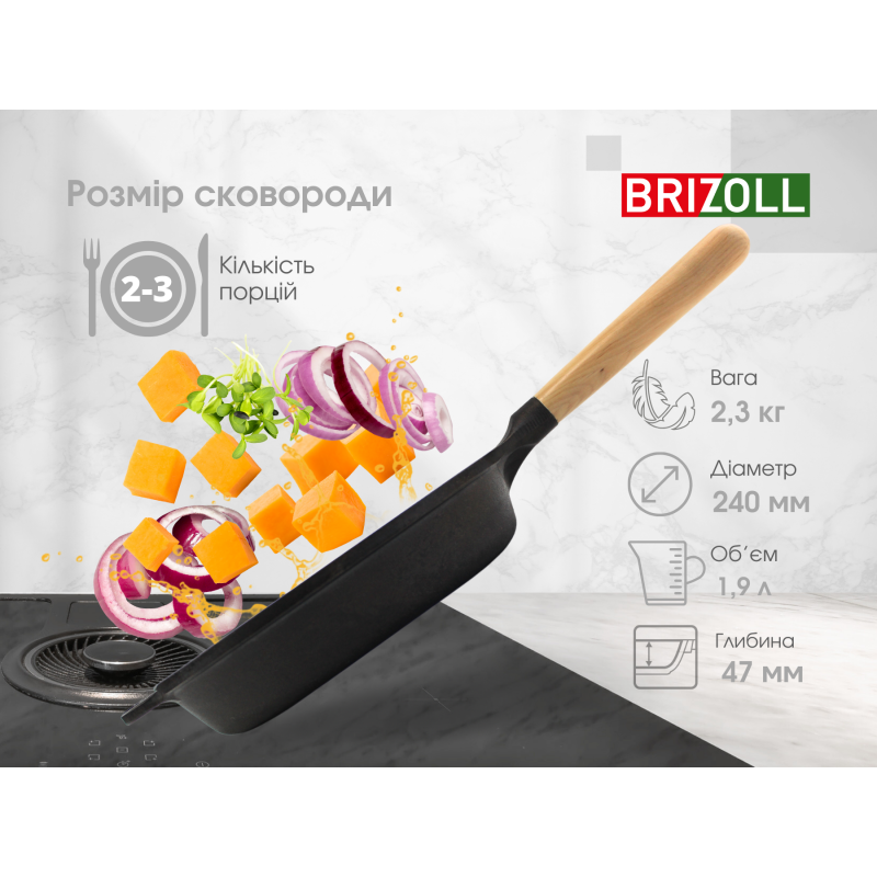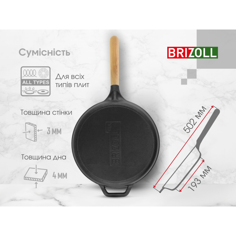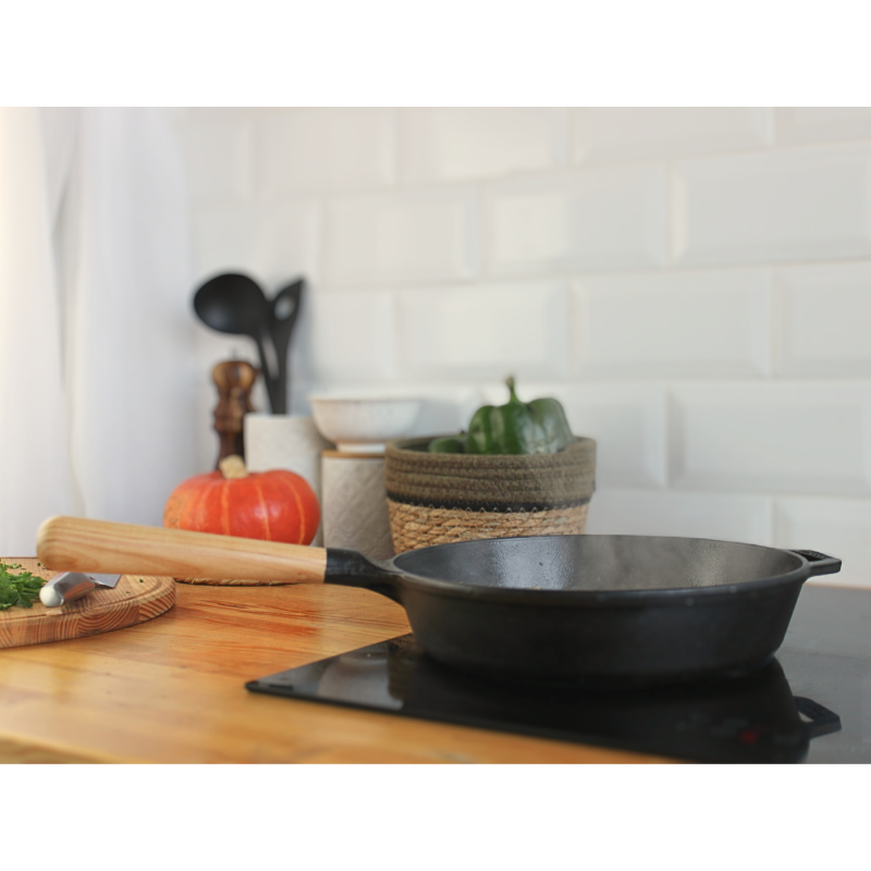 Чавунна сковорода Next підходить для всіх типів плит, не боїться металевого приладдя.