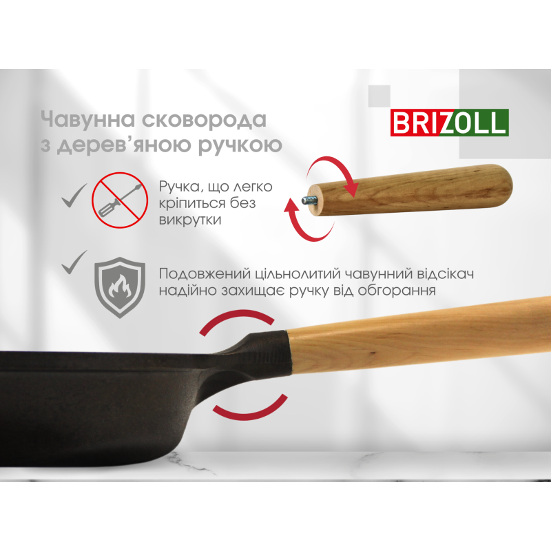 Знімна дерев'яна ручка легко відкручується від корпусу завдяки чому сковороду за потреби можна поставити в духовку.