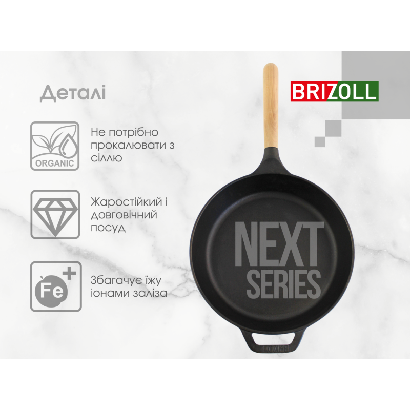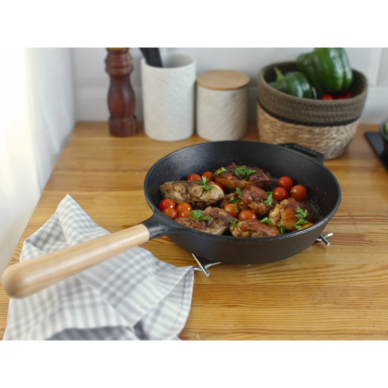 Чавунна сковорідка серії NEXT має вдосконалені пропорції, стильний дизайн, оснащена литим вушком і зручною закругленою знімною ручкою.
