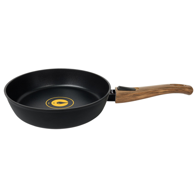 Зручність використання даної сковороди досягається завдяки ергономічній знімній ручці з бакеліту. Додаткове покриття soft-touch, крім тактильного задоволення, захищає руки від опіків і дозволяє не вислизає навіть з вологих долонь. Додаткова яскрава вставка підкреслює дизайн сковороди. Також, завдяки знімній ручці цю сковороду можна використовувати у духовій шафі.