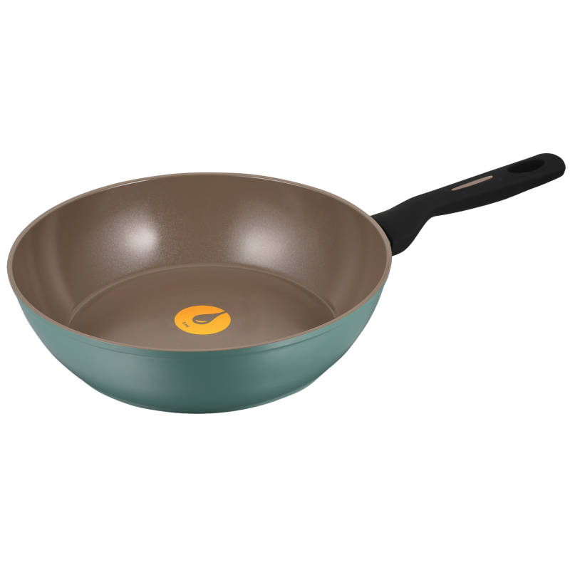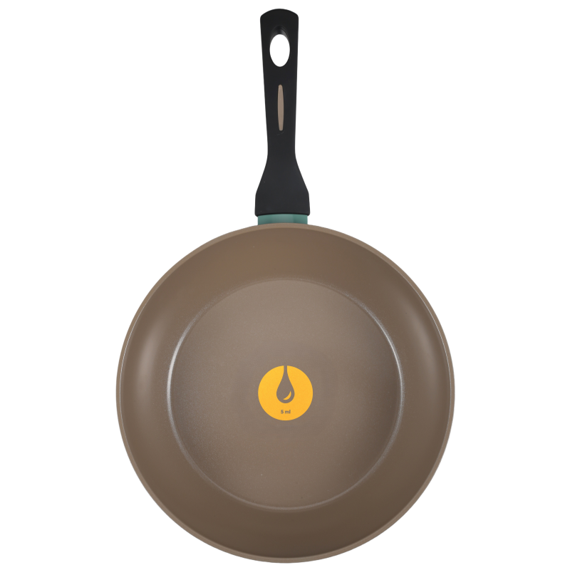 - Високоякісний кований алюміній товщиною 3 мм рівномірно розподіляє тепло по дну та швидко передає його страві.