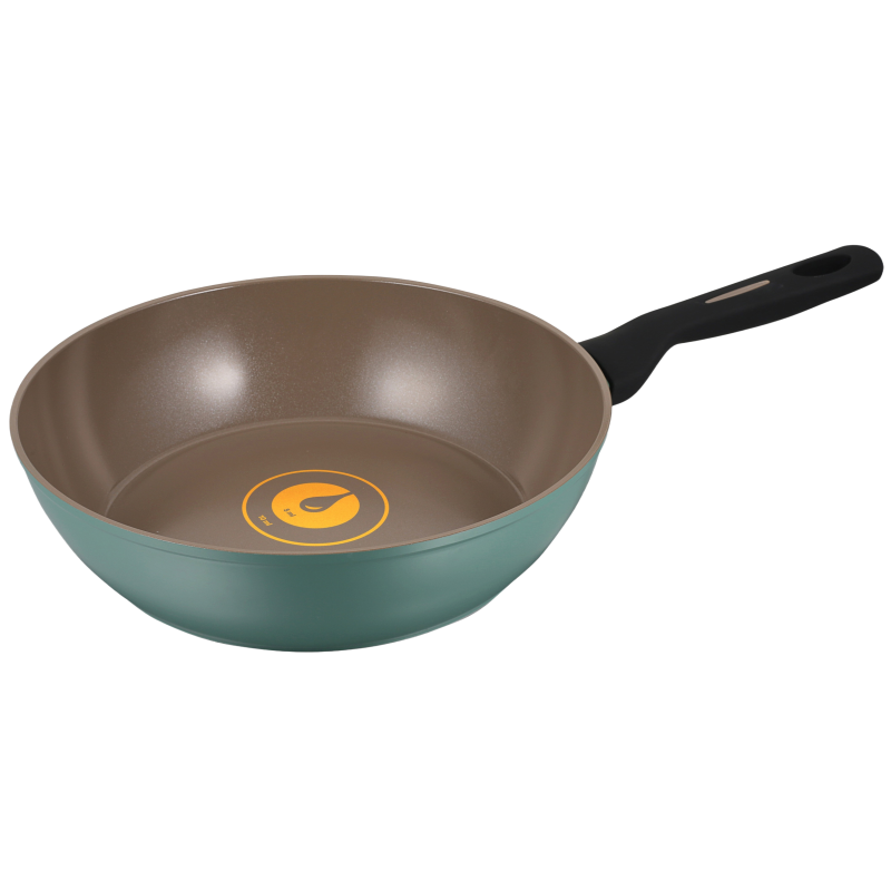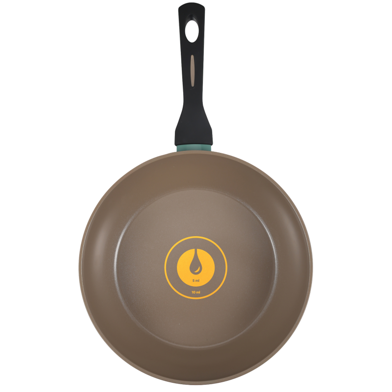 - Високоякісний кований алюміній товщиною 3 мм рівномірно розподіляє тепло по дну та швидко передає його страві.