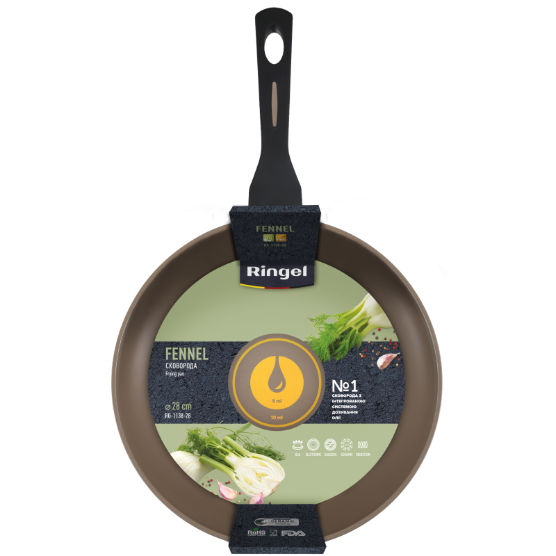Асортимент продукції бренду RINGEL повністю задовольняє потреби в посуді та приладах найвимогливішої пані. Крім того, зовнішній вигляд всього посуду ТМ RINGEL витриманий в універсальній концепції стриманого та лаконічного дизайну, дозволяє самостійно комбінувати поєднання посуду на кожній кухні.