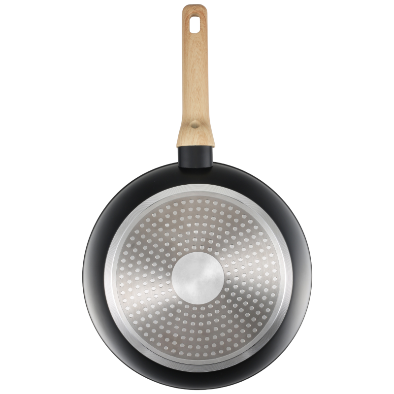 - Високоякісний кований алюміній товщиною 3 мм рівномірно розподіляє тепло по дну та швидко передає його страві.