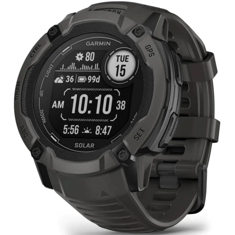 Розумний годинник Instinct 2X Solar розроблений для використання в суворих, вимогливих умовах. Його виняткова довговічність зумовлена використаними матеріалами – армованим волокном полімером та міцним силіконом. Годинник пройшов випробування на водонепроникність, ударостійкість та стійкість до перепадів температур відповідно до військових стандартів США. Він також може похвалитися водонепроникністю 10 атм, що дозволяє занурювати його на глибину до 100 метрів, не знімаючи його. Інші ключові особливості пристрою включають стильне оздоблення, графітову кольорову гаму та можливість заміни ремінця на інший колір.