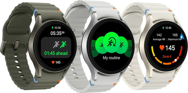 Galaxy Watch7 розширив можливості Workout, додавши інтервальні тренування, аналіз зон пульсу та функцію відстеження відновлення. Під час змагань або домашніх вправ годинник відображає докладні показники, а звукові вказівки та вібрація допомагають тримати потрібний темп без відволікань.