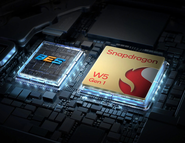 Інноваційна архітектура Dual-Engine поєднує потужності Snapdragon W5 та BES 2800 для максимальної швидкодії та тривалої роботи від батареї без підзарядки.