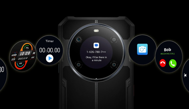 Ознайомтеся з різноманітними функціями 1,32-дюймового додаткового сенсорного екрана на задній панелі. Він пропонує не лише різні стилі планшета для годинника, але й практичні функції, такі як детальні селфі, сповіщення, керування музикою, таймер, прийом вхідних дзвінків тощо.