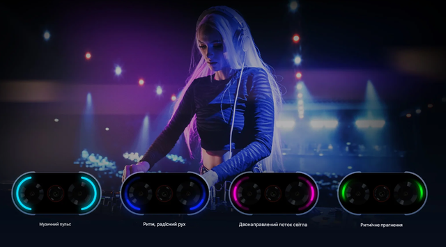 Світло точно синхронізується з музичними частотами: бас гуде, середні частоти танцюють, а високі мерехтять. Кожне світло продовжує мелодію. Оберіть свій стиль з чотирьох режимів світлового ритму.