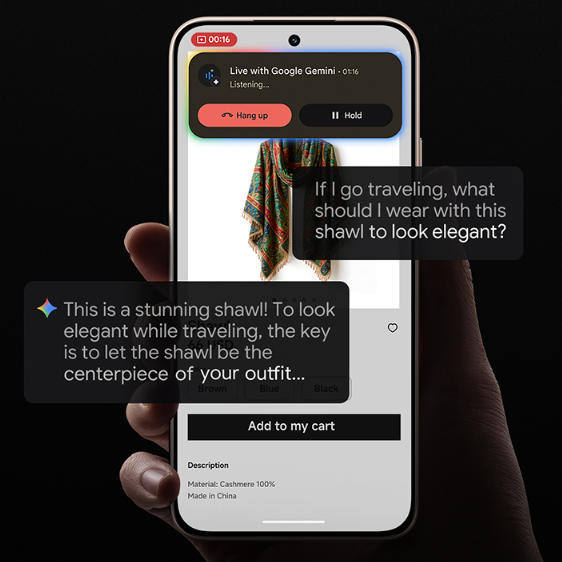 Обведи предмет на фото, про який ти хочеш знати більше, і вдосконалений алгоритм пошуку Google надасть корисну інформацію, що тебе цікавить. Зробити замовлення в кафе в іншій країні або запитати дорогу більше не проблема — з цим легко справляється Перекладач на ШІ. Точніше сформулювати думку в коментарях допоможе інструмент роботи з текстами на ШІ. Шукай пам'ятки, плануй вихідні, створюй зображення та дізнавайся нові рецепти — з усім тобі допоможе Google Gemini.