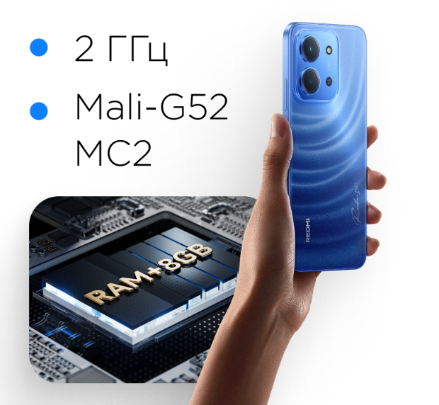 Для стабільної роботи смартфона Xiaomi Redmi 15C обрано сучасний чіпсет MediaTek Helio G81-Ultra. Процесор виготовлений за 12-нм техпроцесом і відрізняється високою енергоефективністю. Розроблений для забезпечення високої продуктивності в різних сценаріях використання. Легко запускай найвимогливіші додатки, насолоджуйся геймінгом з плавною графікою і управлінням без помилок і затримок.