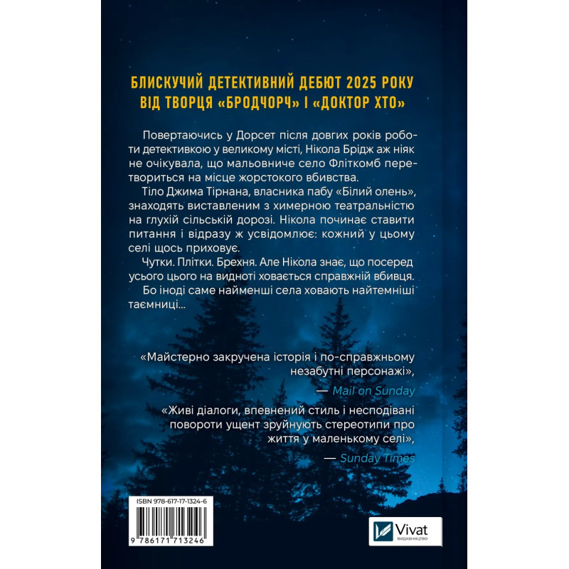 Повертаючись у Дорсет після довгих років роботи детективкою у великому місті, Нікола Брідж аж ніяк не очікувала, що мальовниче село Фліткомб перетвориться на місце жорстокого вбивства.