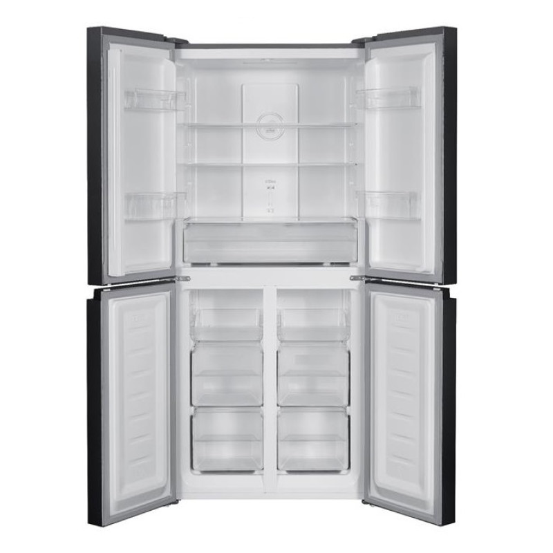 Багатодверний холодильник Snaige MRF30FB-P5CB2EH у виконанні з нержавіючої сталі має загальний об’єм 362 л (237 л холодильне відділення + 125 л морозильне). Чотири двері та система No Frost в обох камерах спрощують щоденне користування без ручного розморожування. Електронне керування з індикаторами та сигналом відчинених дверей доповнюється світлодіодним освітленням. Річне споживання енергії становить 262 кВт·год за класу E. Рівень шуму 39 дБ(A) робить роботу пристрою малопомітною навіть у відкритій кухні.