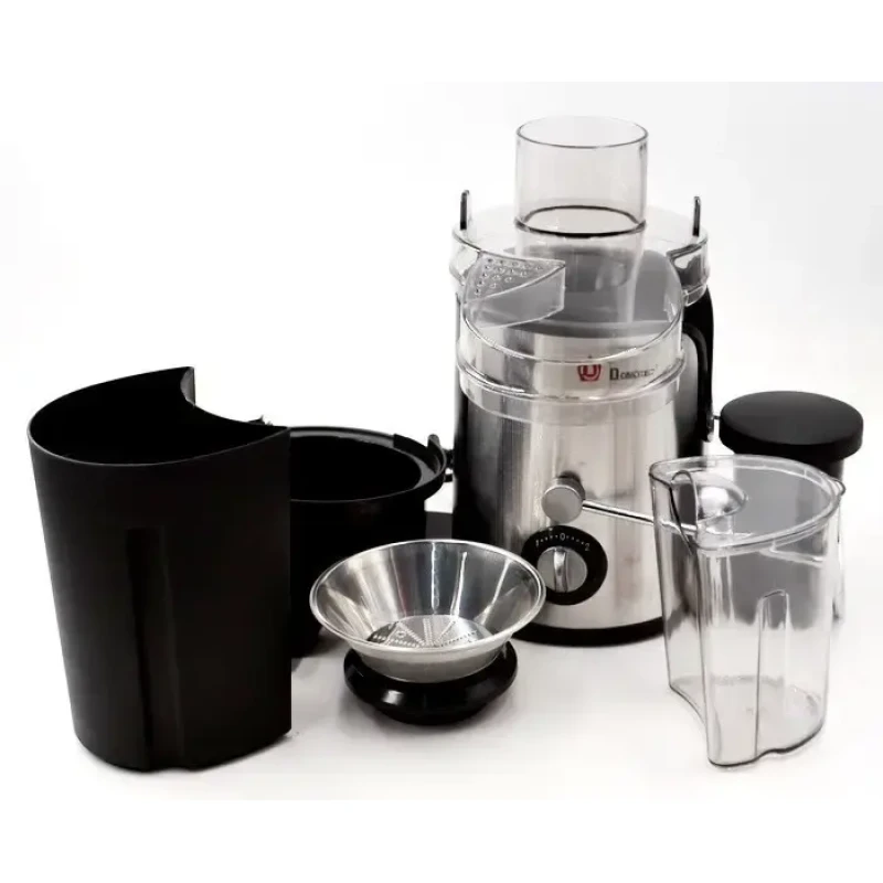 Соковитискач має двокомпонентний корпус із високоякісної нержавіючої сталі та пластику. На дні є 4 присоски для уникнення ковзання. Пристрій має 2 режими швидкостей для різних фруктів та овочів, а також захист від неправильного збирання.