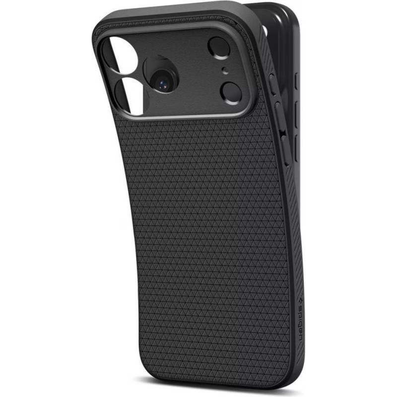 Чохол Spigen Liquid Air для iPhone 17 Pro Max (ACS10265) — це легкий захисний аксесуар у матово-чорному кольорі, виготовлений із амортизованого термополіуретану (TPU). Технологія Air Cushion забезпечує захист від падінь, а підняті краї захищають екран і камеру. Геометричний візерунок із матовою обробкою додає стильний і стриманий вигляд. Ідеально підходить для власників iPhone 17 Pro Max, які цінують легкість, міцність і мінімалістичний дизайн.