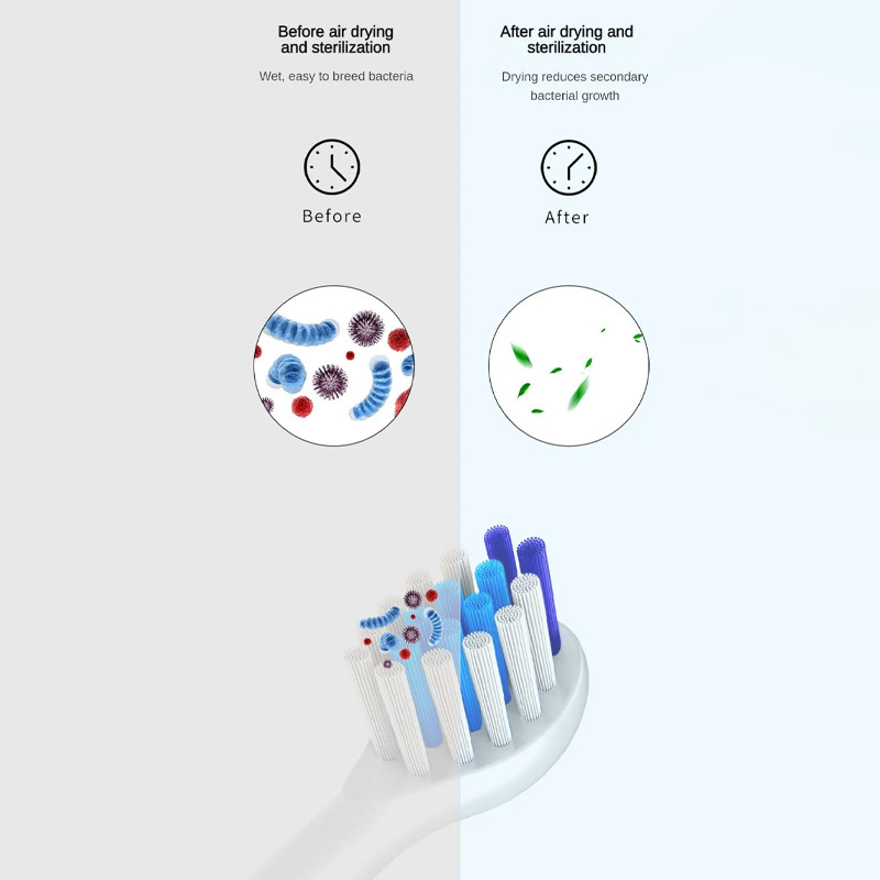 Швидке видалення вологи запобігає появі плісняви та неприємних запахів, продовжує термін служби зубної щітки та покращує її стан