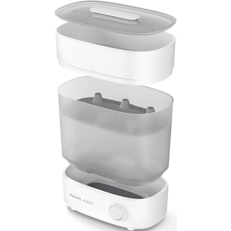 Найголовнішою перевагою стерилізатора є швидке відновлення гігієнічної чистоти. Philips Avent SCF291/00 — пристрій, який дозволяє швидко та ефективно стерилізувати дитячі пляшечки та аксесуари для годування. Використовує пару, яка вбиває 99,9% мікробів1 без використання хімікатів. Таким чином ви можете бути впевнені, що очищені пляшечки або соски придатні для використання та безпечні для вашої дитини.