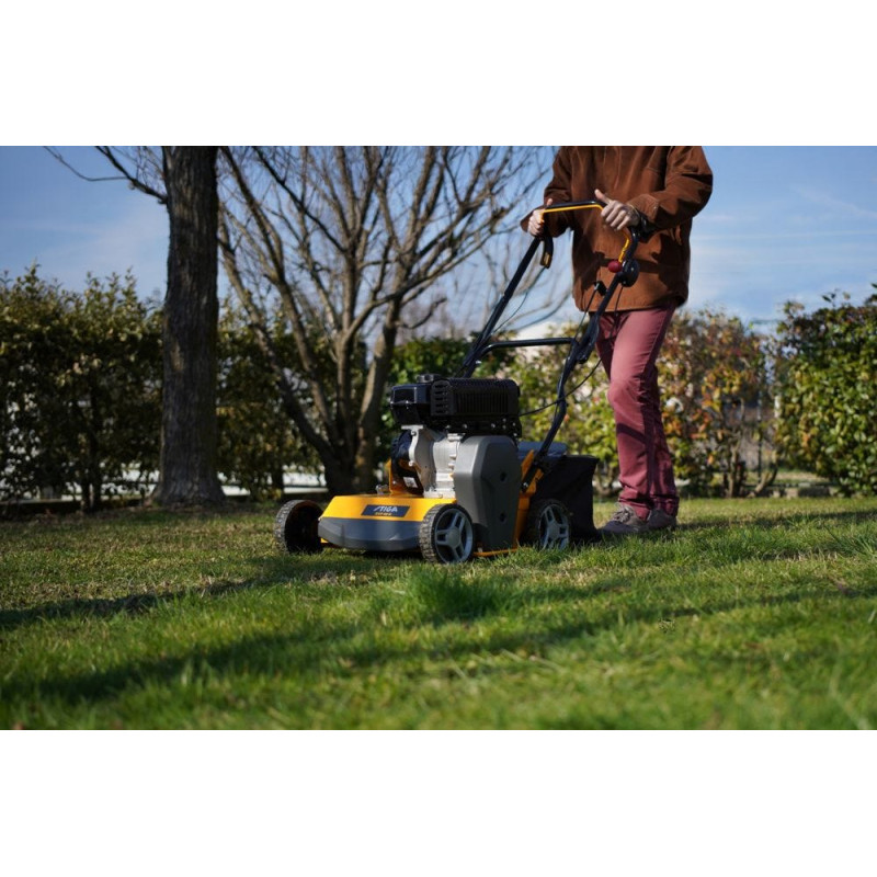 Бензиновий аератор-скарифікатор STIGA SVP40G оснащений 4-тактним двигуном потужністю 4 кВт і робочою шириною 40 см. 32 плаваючі ножі ефективно видаляють мох, повсть і суху траву, покращуючи доступ повітря та поживних речовин до коріння. Травозбірник об’ємом 50 л збирає органічні залишки, а централізоване регулювання глибини дозволяє швидко налаштувати пристрій під стан газону. Модель важить 44 кг і підходить для регулярного відновлення середніх та великих ділянок.