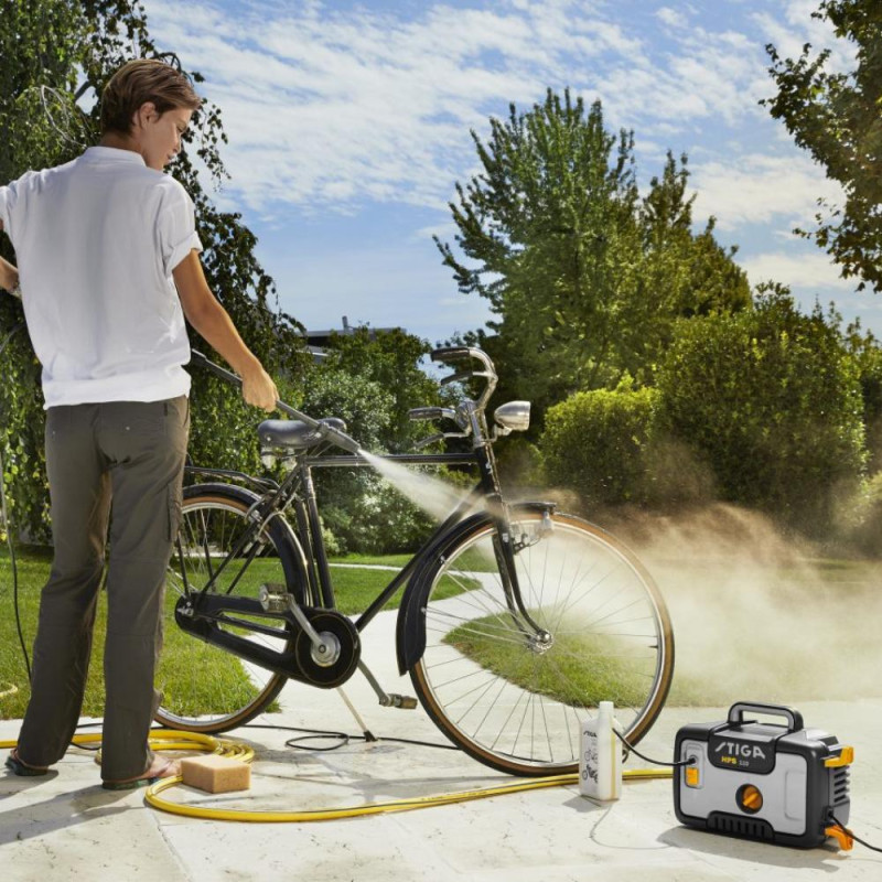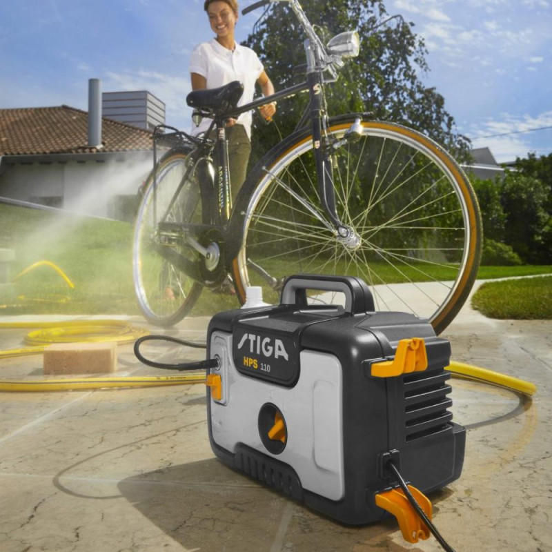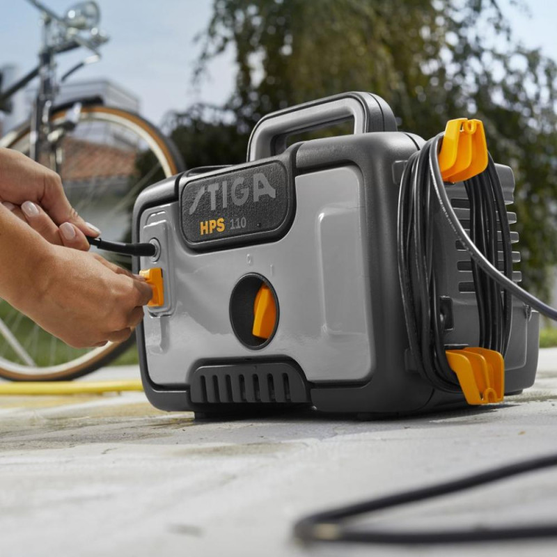 Мінімийка високого тиску STIGA HPS110 призначена для побутового очищення поверхонь навколо будинку. Потужність 1400 Вт, тиск до 110 бар і продуктивність до 390 л/год забезпечують стабільну роботу під час щоденних завдань. Модель використовується для догляду за садовими меблями, велосипедами, інструментом і твердими покриттями. Компактний корпус і вага 5,5 кг спрощують перенесення та зберігання.