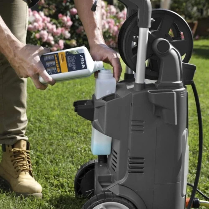 Мінімийка STIGA призначена для інтенсивного очищення великих і складних поверхонь. Потужність 2100 Вт і тиск до 145 бар забезпечують ефективне видалення стійких забруднень. Продуктивність 450 л/год підтримує стабільну роботу без втрати ефективності. Шланг довжиною 9 м розширює робочу зону без частого переміщення. Конструкція адаптована до тривалих навантажень.