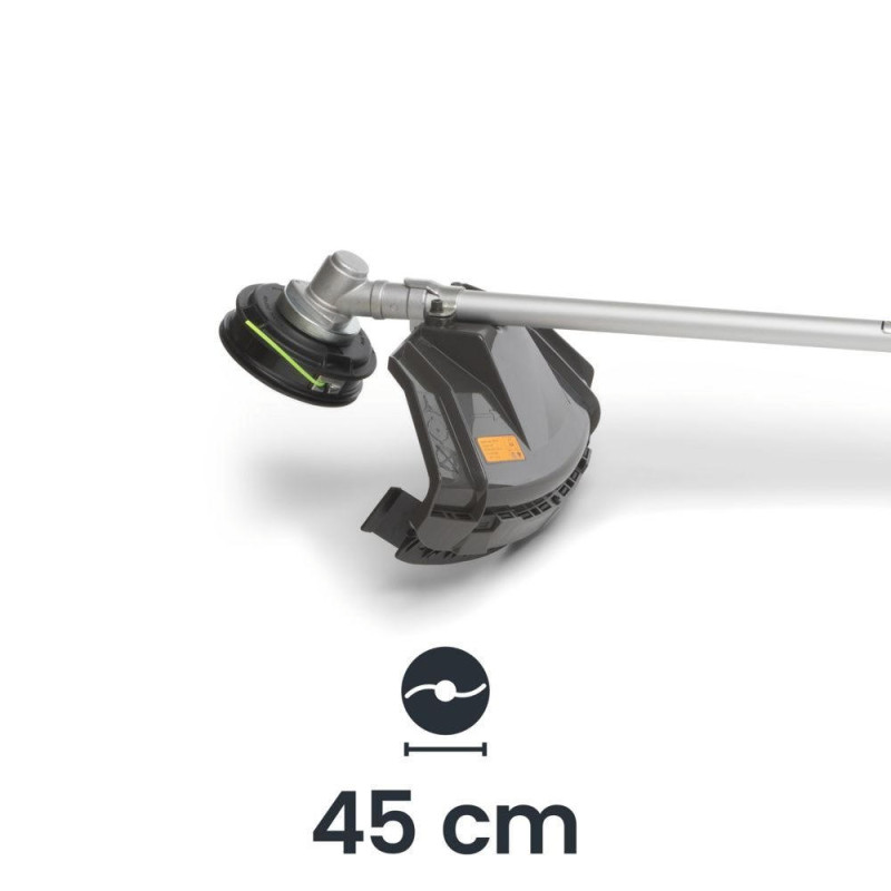 Тример садовий бензиновий STIGA BC555B оснащений 2-тактним двигуном об’ємом 51,7 см³ і потужністю 1,55 кВт, що дозволяє працювати з густою травою, бур’янами та чагарниками. Робоча ширина косіння 45 см і максимальні оберти 9500 хв⁻¹ забезпечують високу продуктивність на великих ділянках. Пряма штанга з посиленим опорним вузлом і велосипедна рукоятка дають стабільність і контроль під час тривалої роботи. Вага 8,25 кг робить інструмент зручним для професійного та інтенсивного використання.