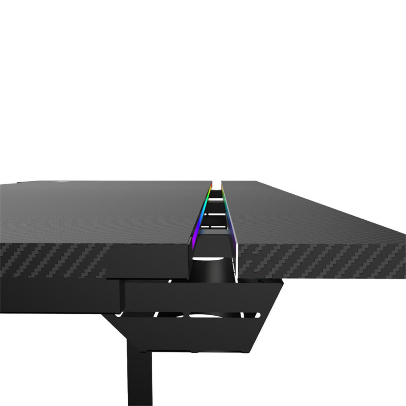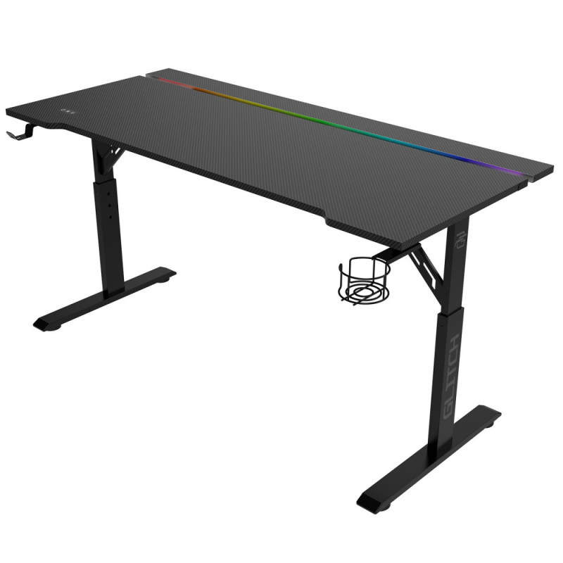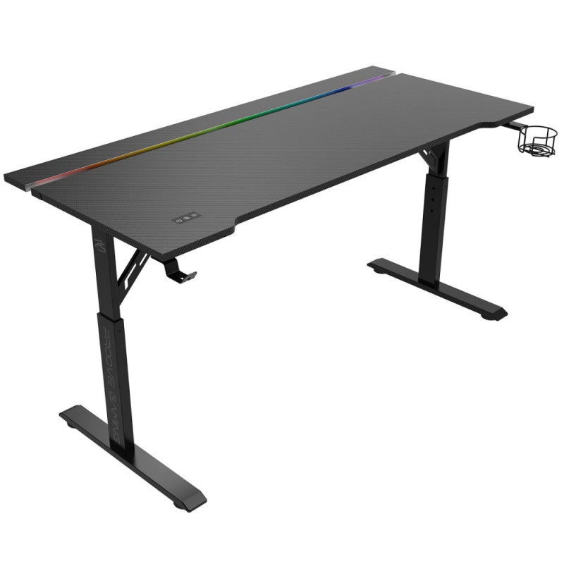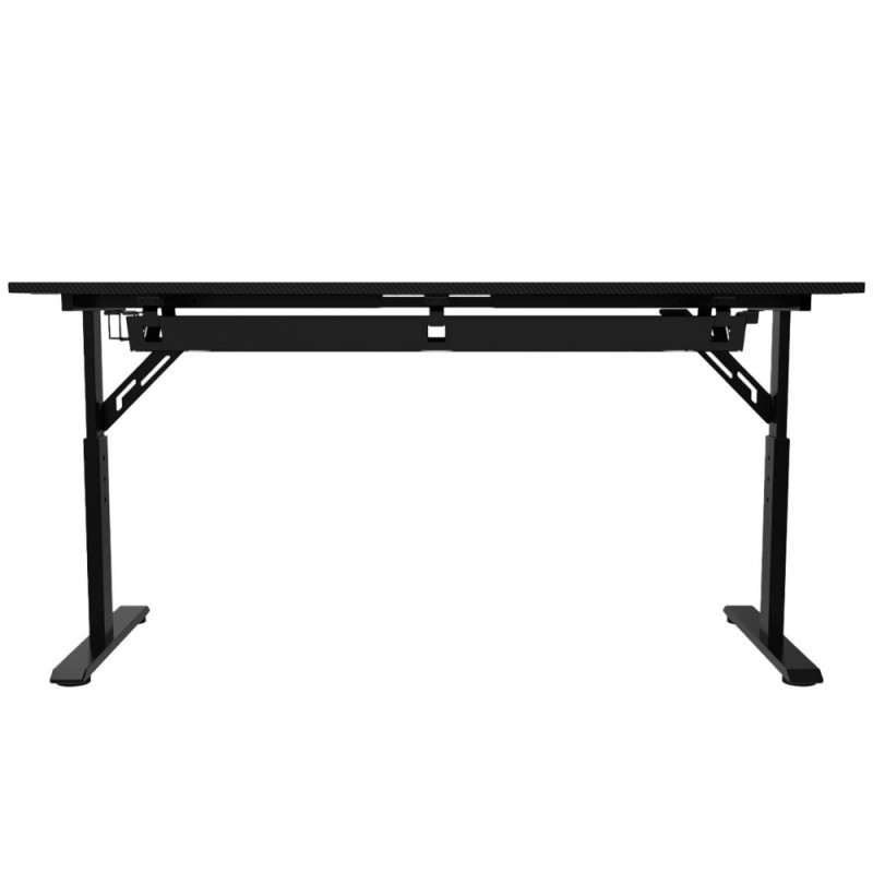 Каркас зі сталі забезпечує високу міцність і витримує навантаження до 60 кг. Стільниця завтовшки 15 мм виготовлена з PB-плити та має текстуроване карбонове покриття – зносостійке та приємне на дотик. Розмір столу – 140×60 см, а регульована висота (71-79 см) дозволяє підлаштувати його під будь-який робочий стиль.
