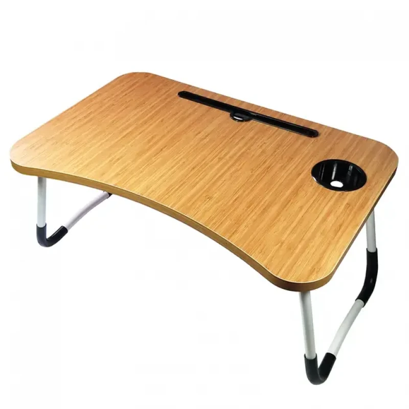 У столі є складні металеві ніжки з прогумованою основою, що протиковзає. Дизайн столу доповнено отвором для планшета, телефону, ручки, склянки та техніки з вузьким екраном.