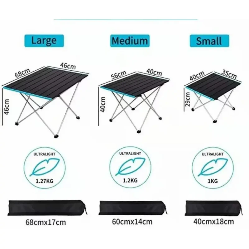 Стіл складного типу для впровадження у туризмі та активному відпочинку. Легкий та зручний, у складі – міцний алюміній. Простий у складанні, а також його зручно зберігати. На такому столику буде зручно обідати за умов перебування серед дикої природи. Розмір моделі – 40*35*29.