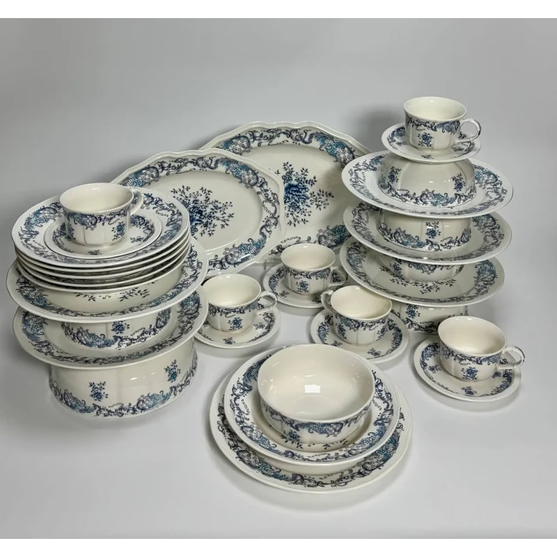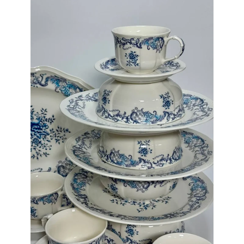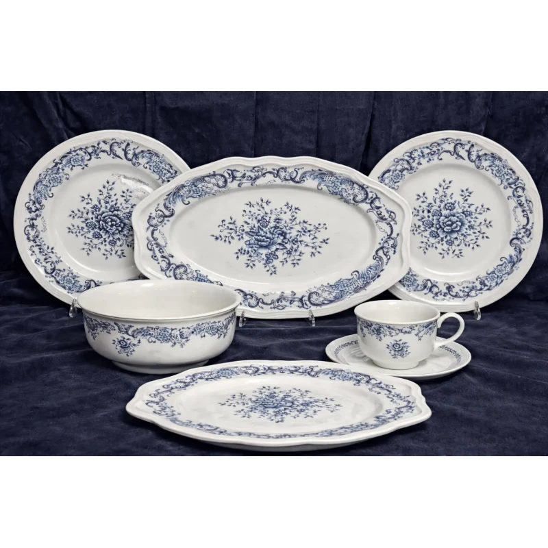 Столовий сервіз RG 1120 - чиста біла порцеляна у поєднанні з глибоким синім декором створює відчуття свіжості, спокою та розкоші. Такий сервіз виглядає благородно як на святковому столі, так і щоденному сервіруванні. Це не просто посуд – це атмосфера затишку, естетики та впевненості у кожній деталі. Ідеальний вибір для дому, подарунка чи стильного ресторанного сервірування.
