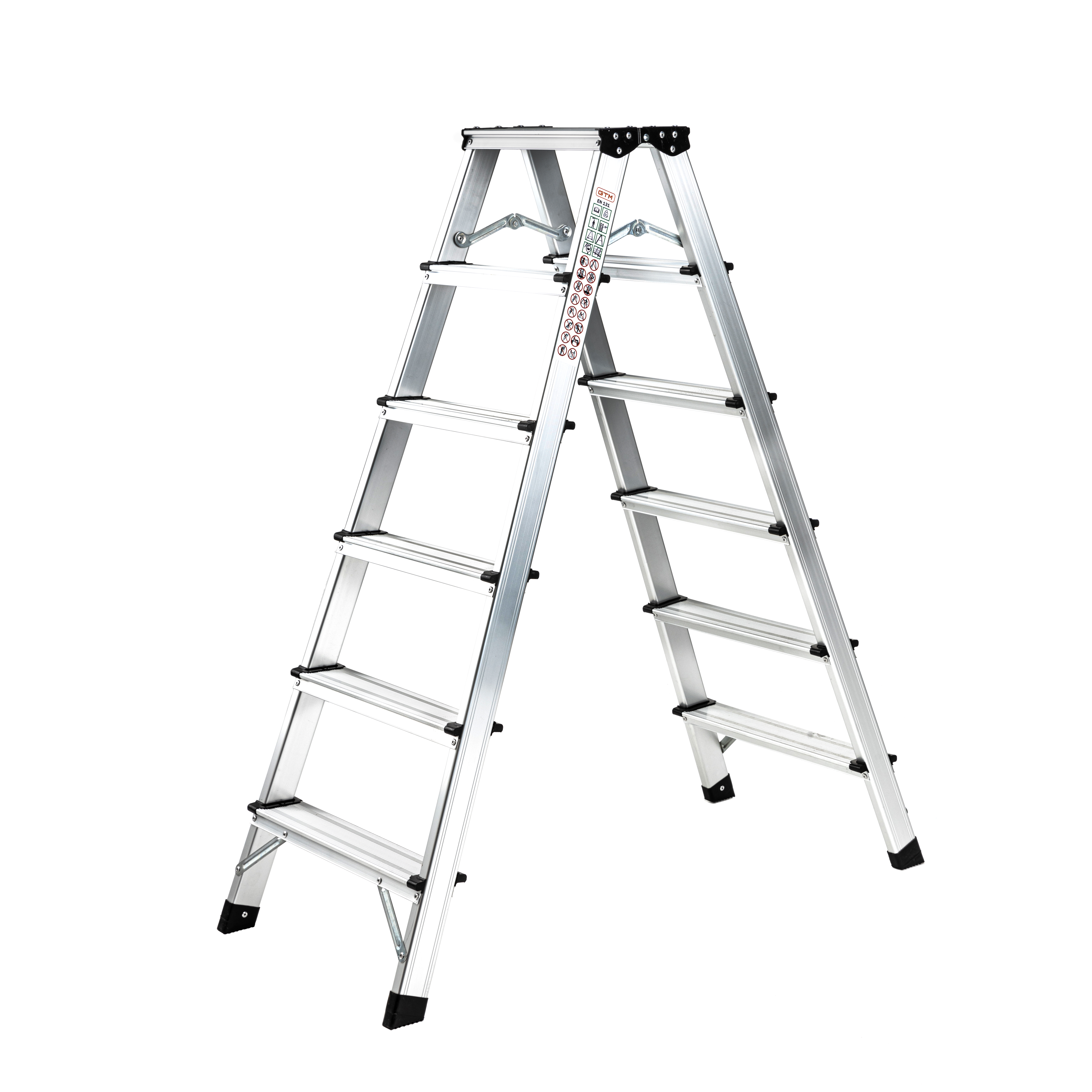 GTM KMH1206 - компактна алюмінієва драбина у формі двосторонньої стрем'янки, яка чудово підходить як для побутового, так і для професійного використання. У даній моделі драбини 6 сходинок і максимальна висота до верхньої сходинки 118 см.