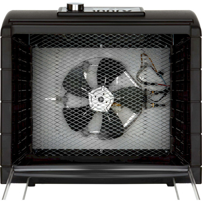 Сушильні сітки мають особливу форму , яка запобігає утворенню цвілі та оптимізує потік повітря. Крім того, прозора форма лотків і дверцят дозволяє візуально контролювати процес сушіння. Пристрій також має вбудований 17 см вентилятор . Це гарантує рівномірний процес сушіння на всіх поверхах і в будь-якому місці сушарки. Крім того, наявний термозапобіжник забезпечує захист від перегріву. LED-дисплей з підсвічуванням інформує про доступні функції, а електронний таймер дозволяє вимкнути сушарку в потрібний момент.