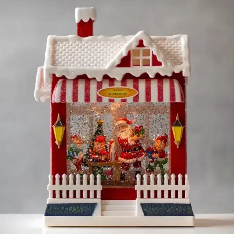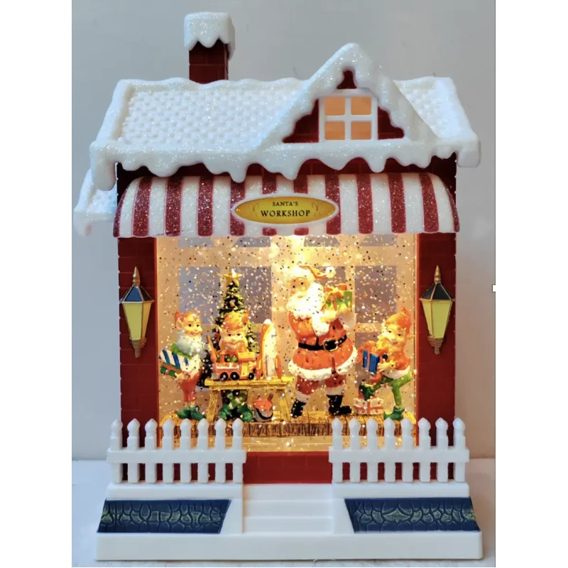 Світильник новорічний "Різдвяний магазин" 25 см WDL-24058. Музичний нічник на батарейках та USB
