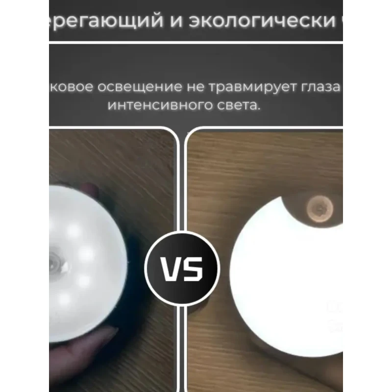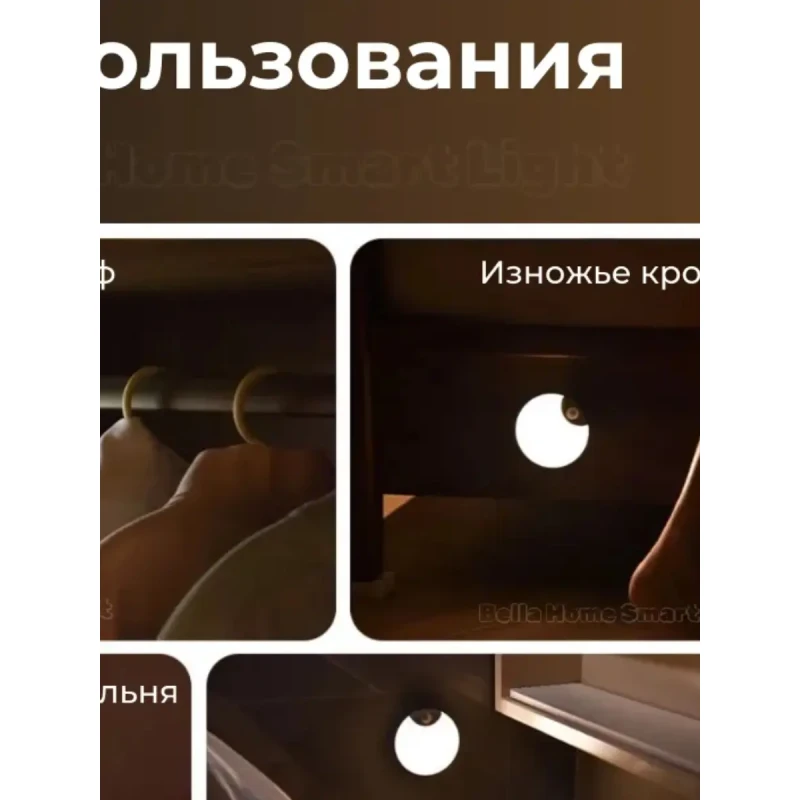 Колір лампи з датчиком руху – холодний білий. Бездротовий світильник максимально функціональний та зручний, зафіксуйте його на будь-якій поверхні для Вашої зручності та на Ваш розсуд, тому що нічник не потрібно включати в розетку, що зазвичай обмежує вибір місця.