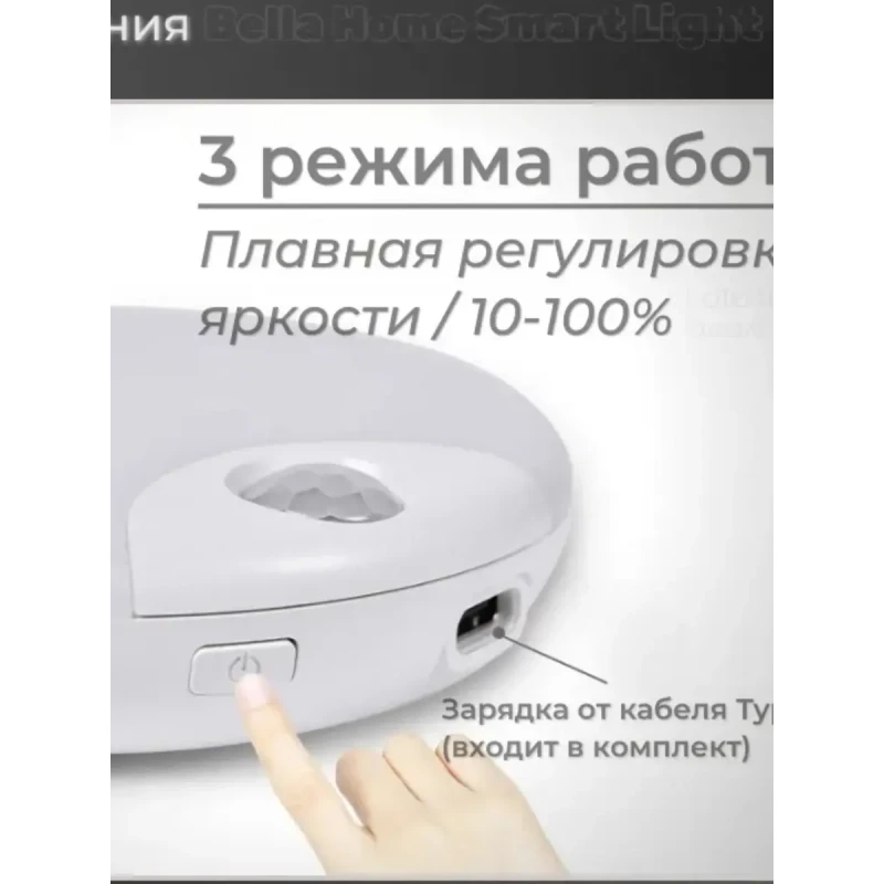 Світильник з датчиком руху бездротової заряджається швидко і працює від акумулятора в автоматичному режимі при мінімальній яскравості до 92 днів, а при максимальній яскравості до 14 днів (з розрахунків включення 4 рази на добу), що дозволить заряджати його вкрай рідко. Він сам вимикається через 20 секунд після того, як люди підуть. Можете назавжди забути про освітлення на батареях, проводах.
